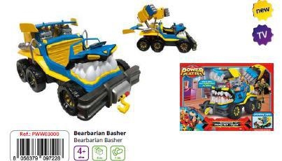 ¡Bearbarian transporta al equipo en este malvado camión monstruo! Enormes puños desplegables con acción de golpe de pistón. Torno retráctil de trabajo y asiento ajustable para las figuras más grandes (figuras no incluidas).