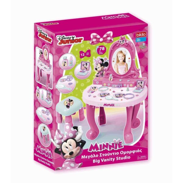 Tocador de juguete de la ratoncita más guapa de Disney con el que podrás maquillarte a tí o a tus muñecas favoritas.