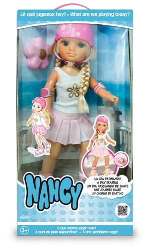 Nancy está preparada y equipada para patinar: casco coderas y lo patines cuentan con luces. El set incluye un mando a distancia para poder interactuar con Nancy y poder decidir cuándo tiene que patinar o parar.