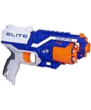 ¡Ataca rápidamente con este lanzador de seis dardos! Lánzalos uno por uno o todos a la vez. Incluye seis dardos Elite.